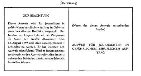 AUSWEIS FÜR JOURNALISTEN IN GEFÄHRLICHEM AUFTRAG