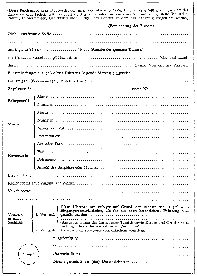 VORDRUCK EINER BESCHEINIGUNG VON NICHT ERLEDIGTEN, VERNICHTETEN, VERLORENGEGANGENEN ODER GESTOHLENEN ZOLLPAPIEREN FÜR DIE VORÜBERGEHENDE EINFUHR