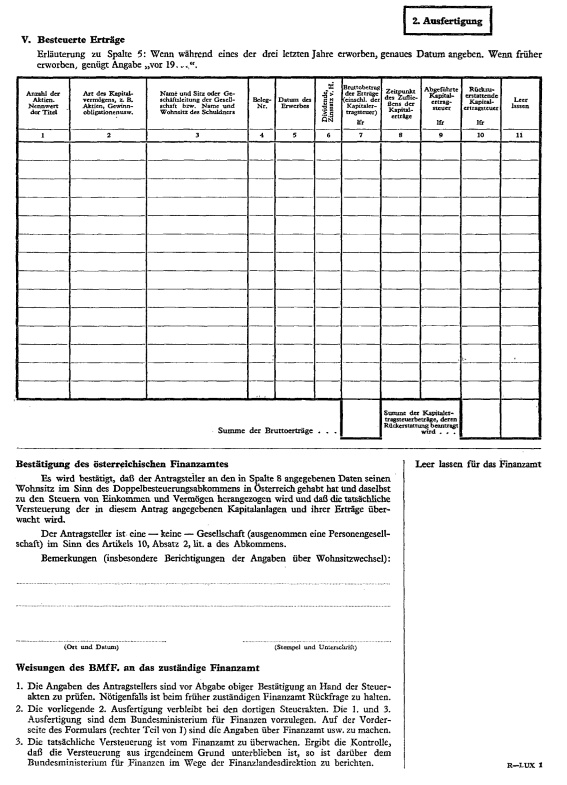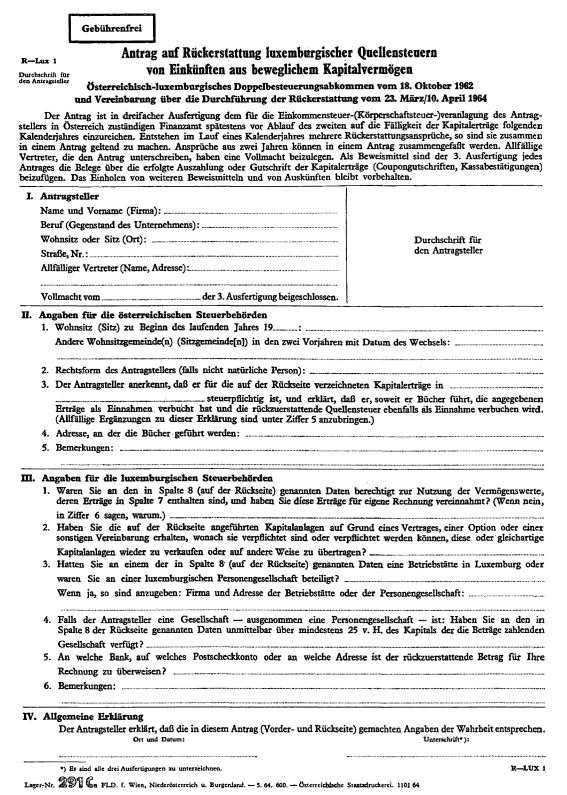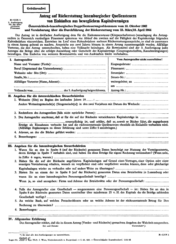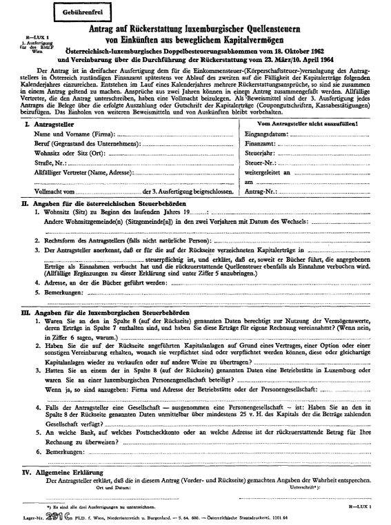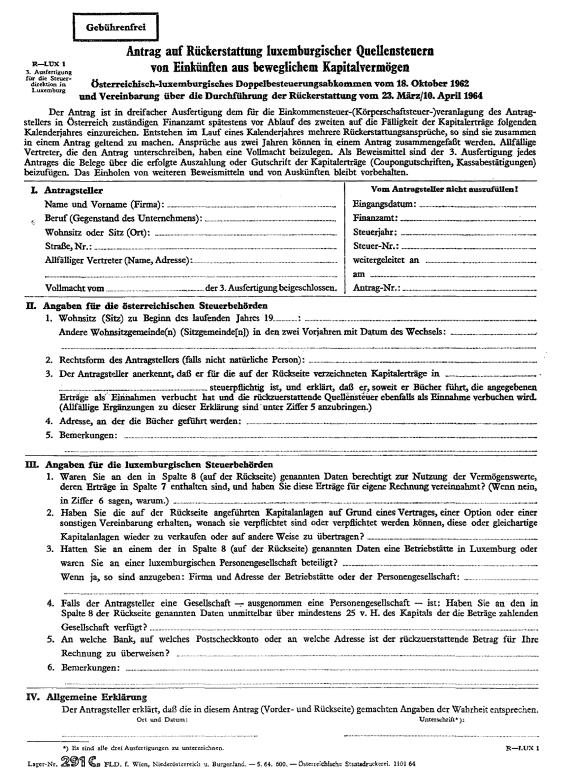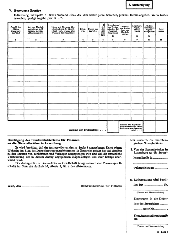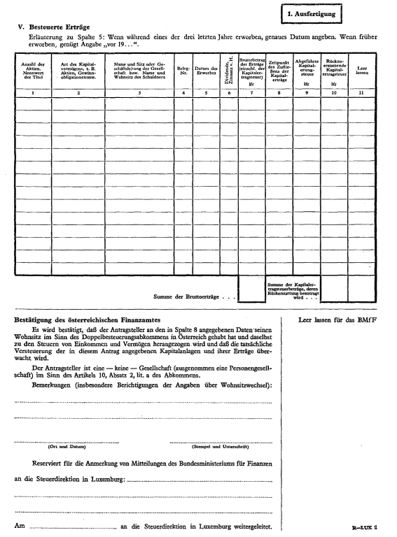 Anlage Doppelbesteuerung – Vereinbarung über die Durchführung der Rückerstattung der im Abzugswege an der Quelle erhobenen Steuern von Einkünften aus beweglichem Kapitalvermögen (Luxemburg)