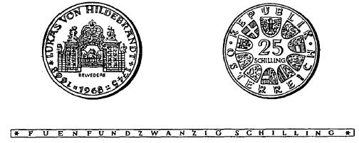 § 2 Scheidemünzen zu 25 Schilling 300. Wiederkehr der Geburt des Baumeisters Lukas von Hildebrandt“