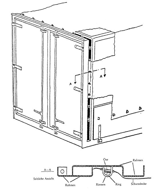 - c) Lüftungs- und Abflußöffnungen sind mit einer Vorrichtung zu versehen, die den Zugang zum Innern des Laderaums verhindert. Diese Vorrichtung muß so beschaffen sein, daß sie von außen nicht entfernt und wieder angebracht werden kann, ohne sichtbare Spuren zu hinterlassen.