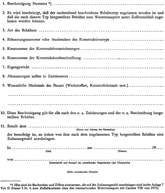 VORSCHRIFTEN ÜBER DIE TECHNISCHEN BEDINGUNGEN FÜR BEHÄLTER, DIE ZUM INTERNATIONALEN TRANSPORT UNTER ZOLLVERSCHLUSS ZUGELASSEN WERDEN KÖNNEN