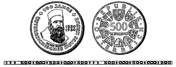 (1) Die eine Seite hat das Kopfbild von Henri Dunant, die Umschrift „100 Jahre Österreichisches Rotes Kreuz“ und die Jahreszahlen „1880“ und „1980“ zu zeigen.