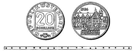 (1) Die eine Seite der Münze hat in einem quadratischen Feld mit stumpfen Ecken auf vertieftem blanken Grund die Zahl „20“ und darunter das Wort „SCHILLING“ sowie das Prägejahr „1984“ mit in der Mitte der Jahreszahl angeordneten Bindenschild zu zeigen. Die Umschrift hat „REPUBLIK ÖSTERREICH“ zu lauten.
