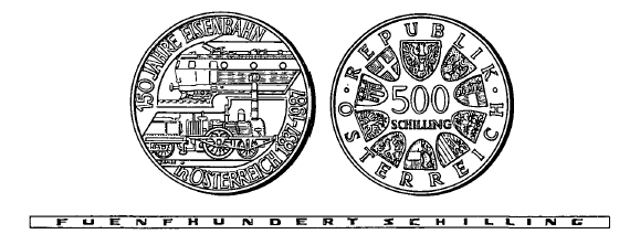 (3) Beide Seiten sind mit einer erhöhten Randleiste zu umrahmen. Der Rand der Münze ist glatt zu gestalten und hat die vertiefte Inschrift „FUENFHUNDERT SCHILLING“ aufzuweisen.