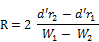 W1 und W2 | = | Breite derselben Peaks bei halber Peakhöhe, |