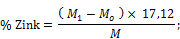 Der Zinkgehalt der Probe wird in Massenprozenten (% m/m) nach folgender Formel berechnet: