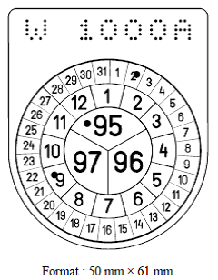 Für VZT Muster VI: Untergrund der Tafel blau mit roten Feld mit Angabe der letzten zwei Ziffern der Jahreszahl des Kalenderjahres in dem die Zulassung erlischt.