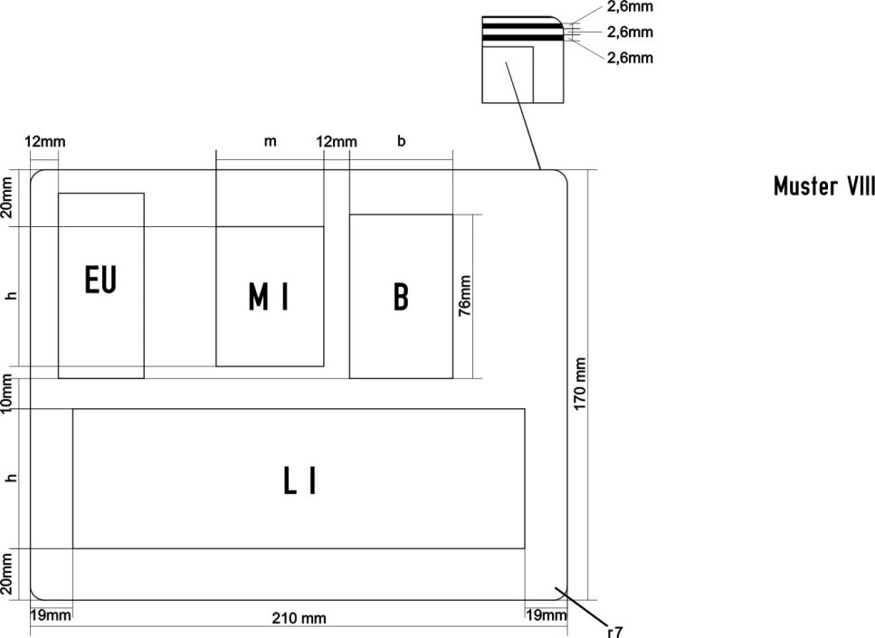 - – nach Muster VIII oder Kennzeichentafel mit Probefahrtkennzeichen für Motorräder im Format wie Muster VIII 13,00 €