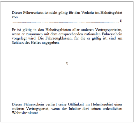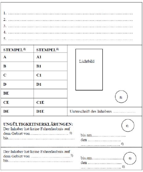 - 3. Eintragungen in Hand- oder Maschinenschrift in den Führerschein müssen in lateinischen Buchstaben oder in der sogenannten englischen Kursivschrift vorgenommen werden.