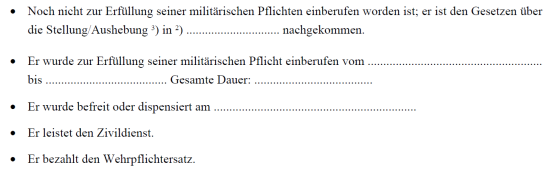 Bescheinigung des militärischen Status