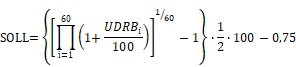 Der SOLL-Wert (SOLL) wird jeweils zum Bilanzstichtag aus der durchschnittlichen monatlichen Rendite österreichischer Bundesanleihen am Sekundärmarkt („Umlaufgewichtete Durchschnittsrendite für Bundesanleihen“; kurz UDRB) oder eines an ihre Stelle tretenden Index der letzten 60 Monate ermittelt: