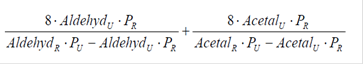 Die Summe der Gehalte an Acetaldehyd und Acetal, berechnet als Acetaldehyd in ppm (V/V), wird nach folgender Formel berechnet: