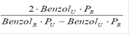 Der Gehalt an Benzol (ppm) wird aus den Flächen der entsprechenden Peaks in den Chromatogrammen der Untersuchungslösung und der Referenzlösung nach folgender Formel berechnet: