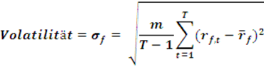 (1) Die Volatilität des OGAW ist zu errechnen und anschließend auf eine jährliche Bemessungsgrundlage zu skalieren. Die Formel hierfür lautet: