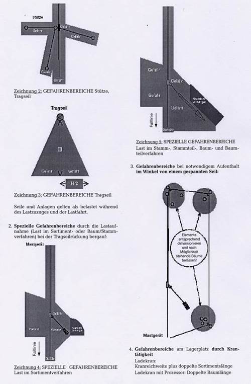 - 1. Allgemeine Gefahrenbereiche von belasteten Seilen bei der Tragseilrückung: