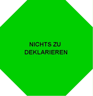 (Beschreibung: grünes Achteck mit weißem Rechteck, das den Schriftzug „NICHTS ZU DEKLARIEREN“ in schwarzer oder grüner Schrift enthält)