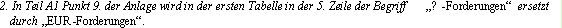 5. In Teil C der Anlage werden in der Tabelle zur Überschrift „Zusammenfassung der Eigenmittelerfordernisse“ die Zeilen