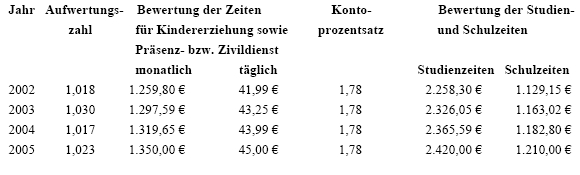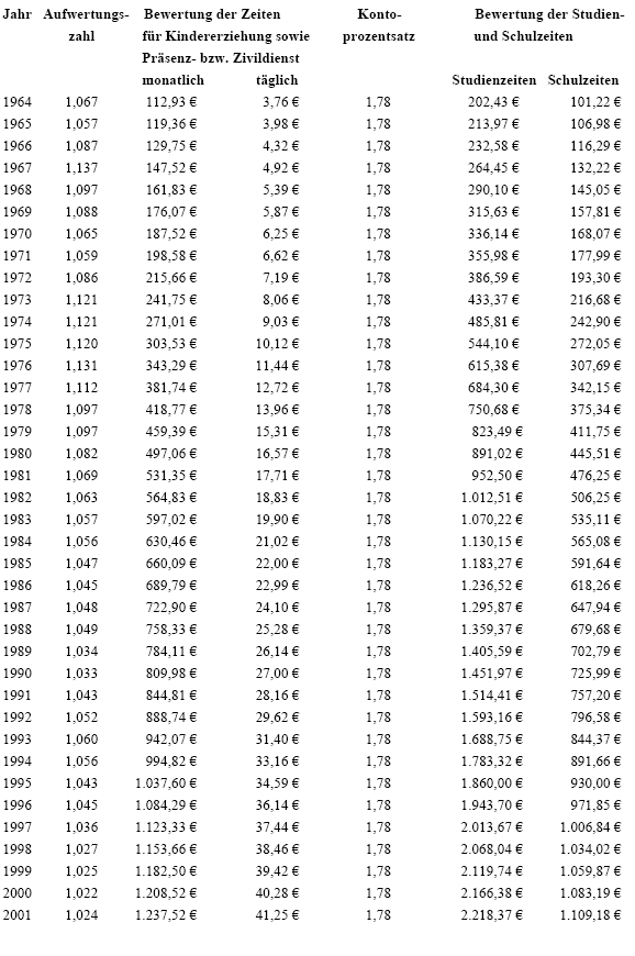 - 2. dann, wenn die versicherte Person im Zeitpunkt des Todes Anspruch auf Invaliditäts- oder Berufsunfähigkeits- oder Erwerbsunfähigkeitspension hatte und nach deren Anfall weitere Versicherungsmonate der Pflichtversicherung erworben hat, die Leistung für jeden dieser Monate - unter Anrechnung auf die nach § 6 Abs. 2 zweiter Satz begrenzten Zurechnungsmonate - um 0,25 % zu erhöhen ist;