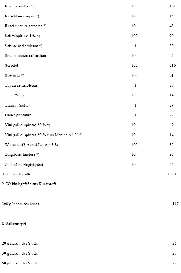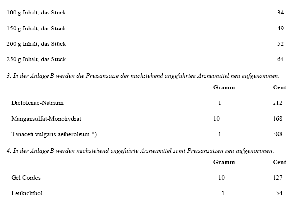 2. In der Anlage B werden die Preisansätze der nachstehend angeführten Arzneimittel und Gefäße wie folgt festgesetzt: