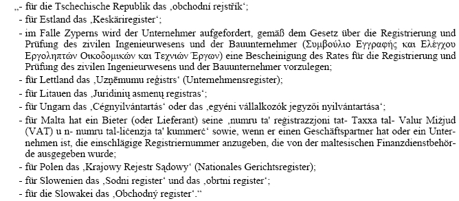 2. In Anhang VII Punkt B. „Für Lieferaufträge“ wird im letzten Gedankenstrich der Punkt durch einen Strichpunkt ersetzt und es werden folgende Gedankenstriche angefügt: