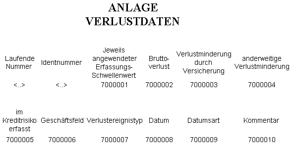 § 1. Übergeordnete Kreditinstitute und Kreditinstitute, die keine nachgeordneten Institute im Sinne des § 30 BWG sind, haben, sofern sie zur Berechnung der Eigenmittel für operationelle Risiken entweder den Standardansatz, den alternativen Standardansatz oder einen fortgeschrittenen Messansatz anwenden, die Meldung über die im Laufe des vergangenen Kalenderjahres gesammelten Verlustdaten, einschließlich dem jeweils angewendeten und institutsintern festzulegenden Schwellenwert der Verlusterfassung, entsprechend der Anlage zu erstatten.