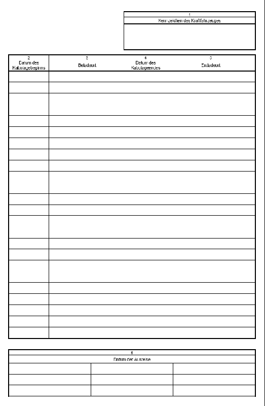 - 4. das Datum an dem die jeweilige Kabotagetätigkeit beendet wird;