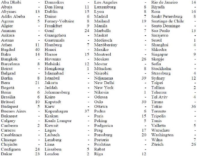 Für nachstehend angeführte Dienstorte im Ausland wird der Hundertsatz für die Bemessung von Kaufkraftausgleichszulagen nach § 21b Abs. 1 GehG für den Monat Dezember 2009 wie folgt festgesetzt: