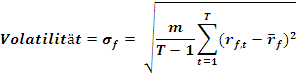 § 3. (1) Die Volatilität des OGAW ist zu errechnen und anschließend auf eine jährliche Bemessungsgrundlage zu skalieren. Die Formel hierfür lautet: