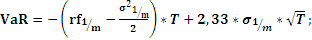 - dem VaR auf Basis eines Konfidenzintervalls von 99 % mit einer Halteperiode gleich der