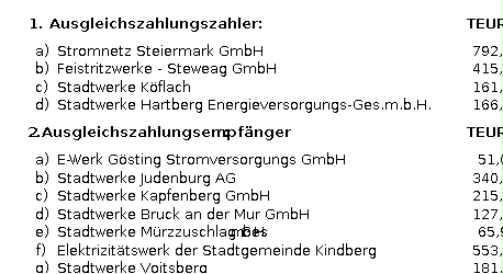 (4) Für den Netzbereich Steiermark werden folgende Ausgleichszahlungen festgelegt: