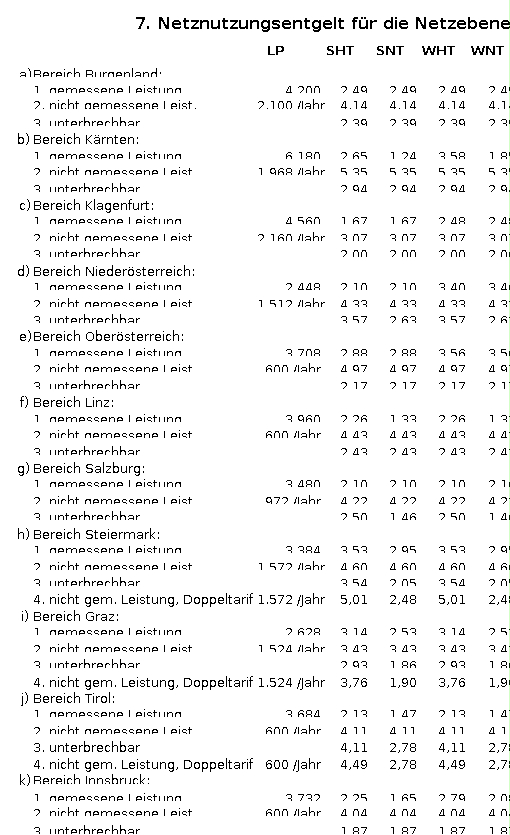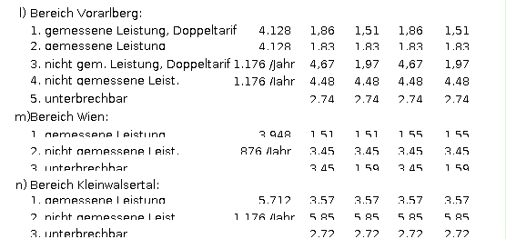 Österreichischer Bereich: | Cent 0,1180/kWh | |