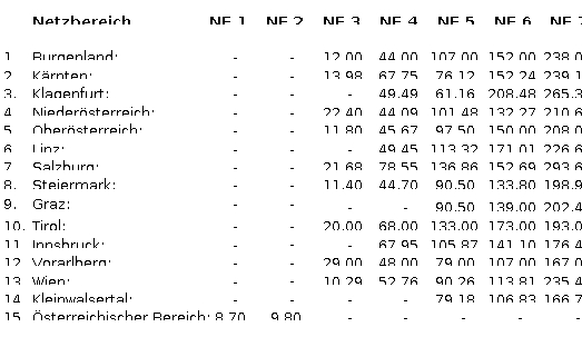 (2) Für den Netzbereich Niederösterreich werden folgende Ausgleichszahlungen festgelegt:
