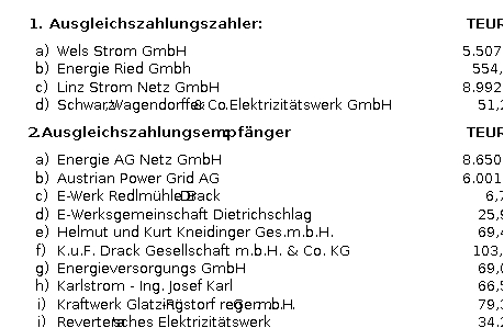 (3) Für den Netzbereich Oberösterreich werden folgende Ausgleichszahlungen festgelegt: