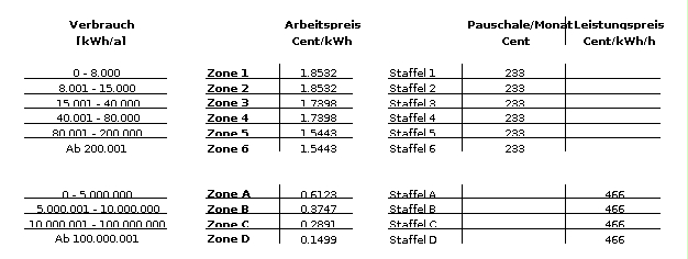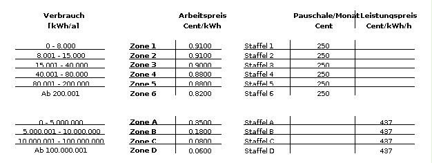 (6) Für den Netzbereich Vorarlberg werden folgende Ausgleichszahlungen festgelegt: