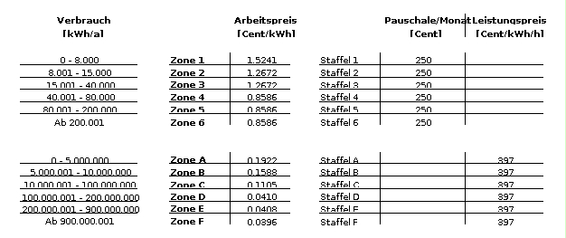„(8) Für das von Entnehmern zu entrichtende Netznutzungsentgelt werden folgende Tarife bestimmt: