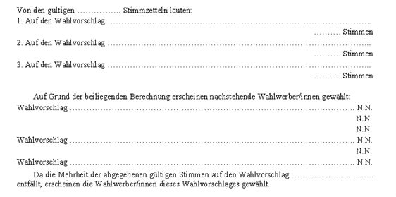 bb) Anlage 5 erhält in der signierten authentischen Fassung vom Textteil „Von den gültigen …………… Stimmzetteln lauten“ bis zu „(Unterschriften)“ folgendes Aussehen: