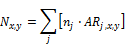 - ARx,y das absolute Risiko AR der betreffenden gesundheitsschädlichen Auswirkung (HA, HSD), deren Berechnung anhand der in Punkt 2 dieses Anhangs beschriebenen Formeln für den mittleren Wert jedes Bereichs (z. B. 50,5 dB für den Bereich 50-51 dB oder 52,5 dB für den Bereich 50-55 dB - je nach Datenverfügbarkeit) erfolgt;