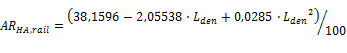 Für die Berechnung des absoluten Risikos AR sind in Bezug auf die gesundheitsschädlichen Auswirkungen von starker Belästigung HA folgende Dosis-Wirkung-Relationen zu verwenden: