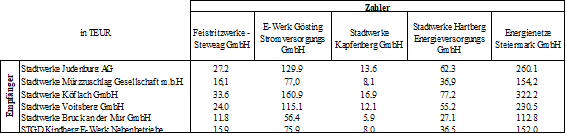 - 3. Energienetze Steiermark GmbH zahlt an Austrian Power Grid AG 1.130,5;