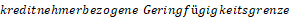 …Summe der Kreditsummen der innerhalb der Bemessungsperiode vom Kreditinstitut neu vereinbarten Finanzierungen gemäß § 2 Abs. 2, die unter die kreditnehmerbezogene Geringfügigkeitsgrenze gemäß § 9 Abs. 1 fallen.
