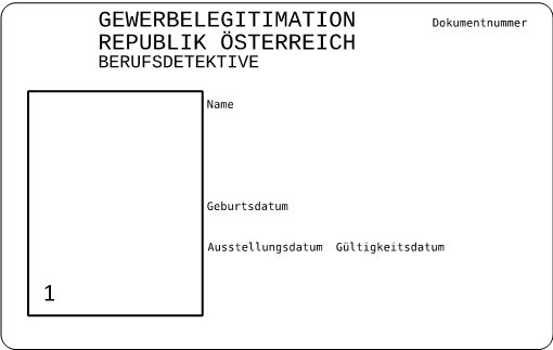 1. 1. Gewerbelegitimationen für Berufsdetektive,