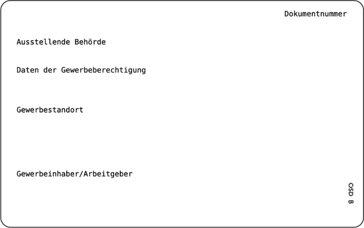 (2) Die Gewerbelegitimation hat folgende Fälschungssicherheitsmerkmale zu enthalten: