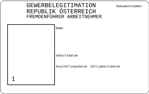 § 2. (1) Die Gewerbelegitimation wird als beidseitig bedruckte Karte aus Polycarbonat hergestellt. Ihre Abmessungen haben dem Format ID-1 der ISO-Norm 7810 zu entsprechen.