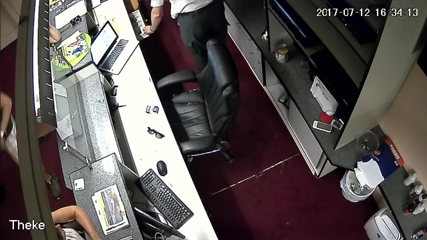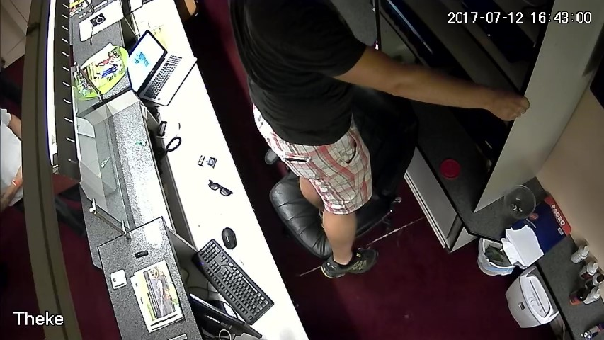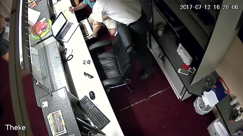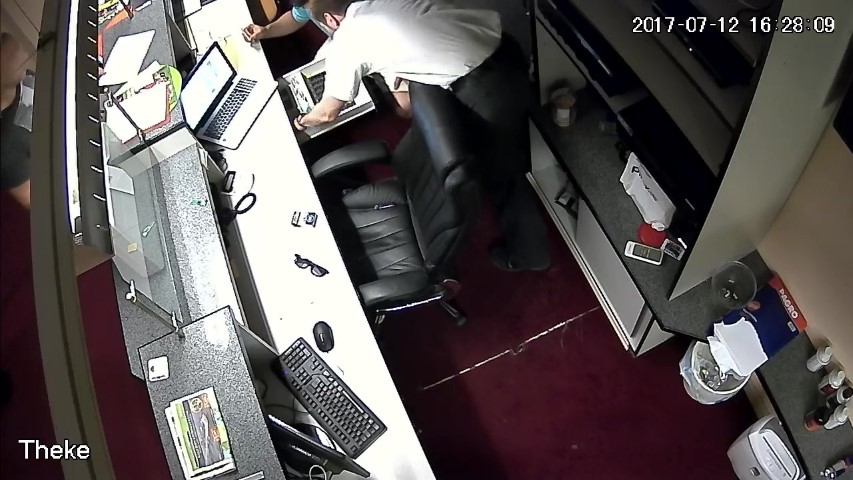F.14. 16:28:06 bis 09 Uhr: Finanzpolizist greift in die Geldlade.