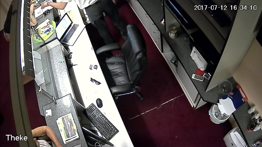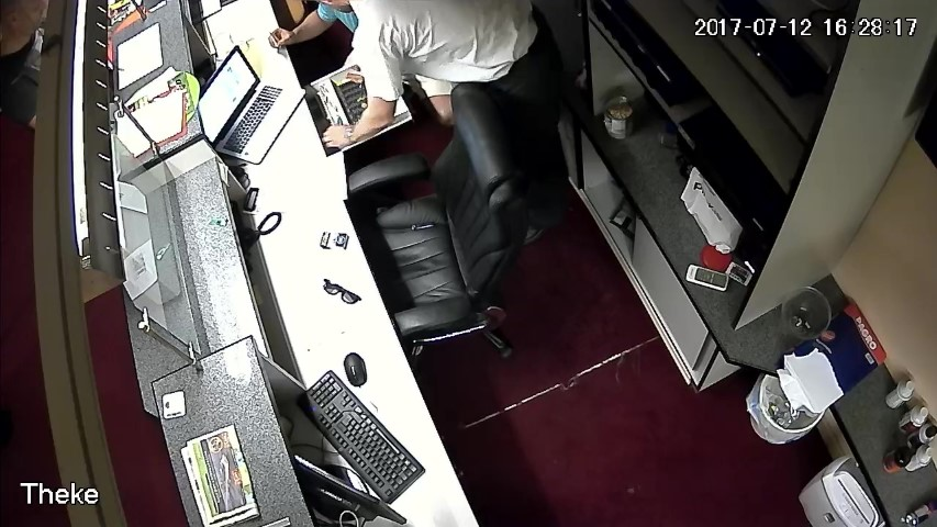 F.13. 16:28:03 Uhr: D öffnet die Geldlade des Tresens.