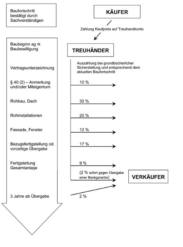 Abbildung 1: Zeit-Weg-Darstellung - Grundbücherliche Sicherung und Zahlung nach Ratenplan „B“ gem § 10 Abs 2 Z 2 BTVG