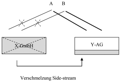 Bestehen an der übertragenden und der übernehmenden Gesellschaft (zumindest zum Teil) direkt oder indirekt idente Anteilsverhältnisse, wird von einer Side-stream-Verschmelzung bzw Schwesternverschmelzung gesprochen.