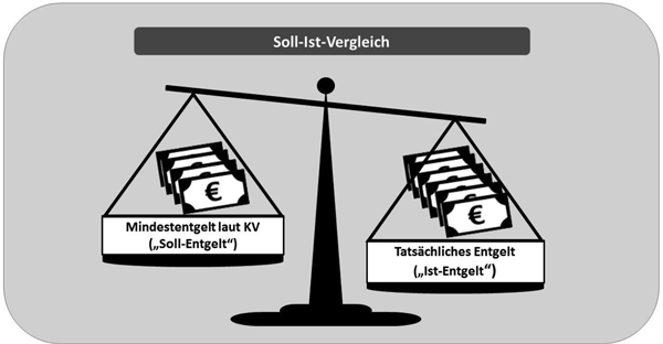 Für die Beurteilung der Frage, ob im konkreten Fall Lohndumping vorliegt, ist das kollektivvertragliche bzw mindestlohntarifliche Entgelt („Soll-Entgelt“) mit dem tatsächlich gewährten Entgelt („Ist-Entgelt“) zu vergleichen.