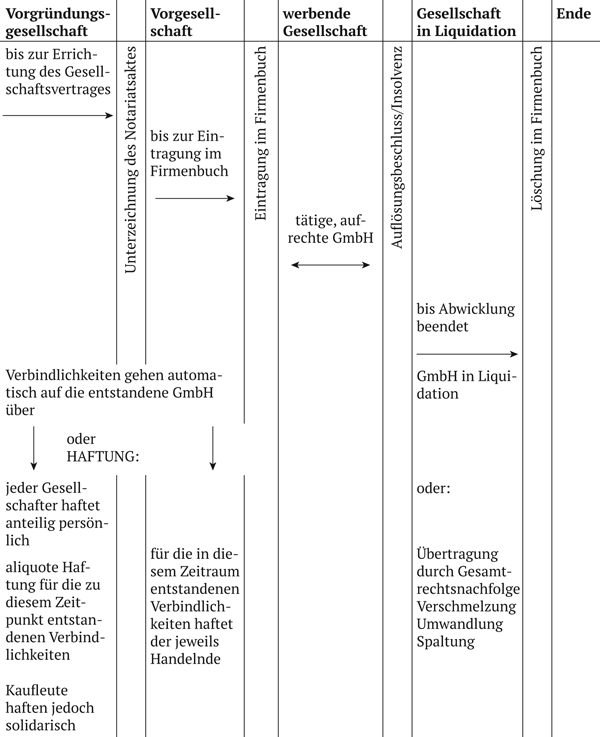 Je nachdem, in welchem Stadium sich die Gesellschaft befindet, sind unterschiedliche Haftungstatbestände gegeben: